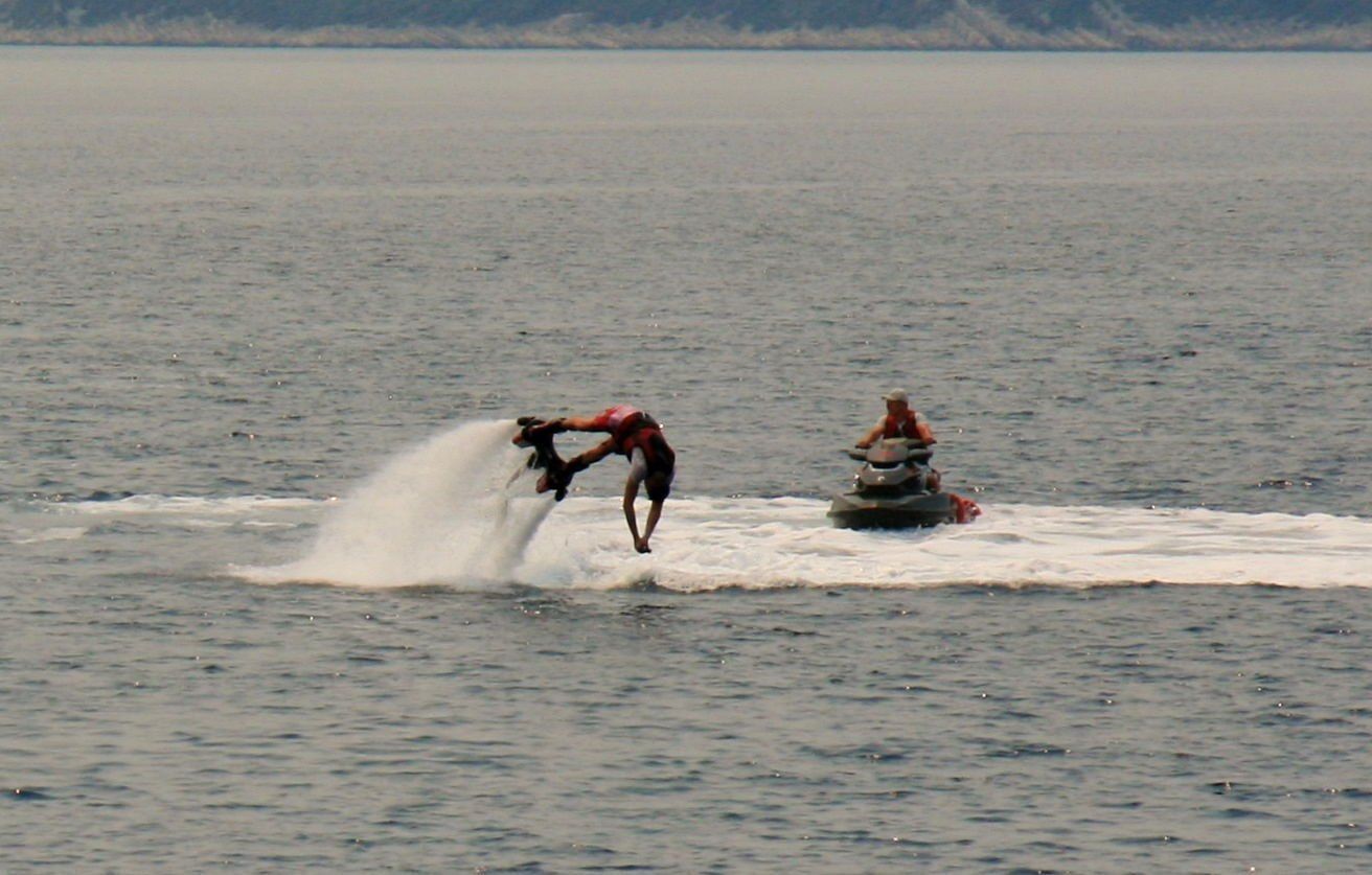 July 21st, after spending a night on Solta, in the upmarket Martinis-Marchi marina in Maslenica, we anchor in nearby Krknjas cove east of Veli Drvenik. Always a popular anchorage for its turquoise water, in high season it is crowded with trip boats, the nouveau-riche on chartered super-yachts (and their toys), and the rest of us mere mortals on boats displaying an interesting range of anchoring skills.